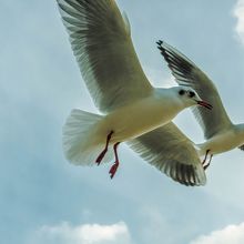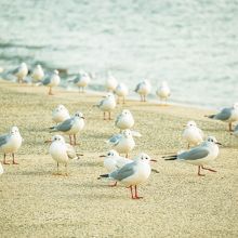 愛知県蒲郡の竹島海岸は、毎年冬になると多くのカモメが飛来してきます。パンの耳やかっぱえびせんを持って行くと、カモメが近くに寄ってきます。