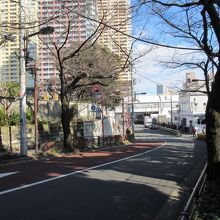 日暮里駅から谷中銀座に向かう坂道です。この坂道を境にして荒川区と台東区に分かれています。荒川区側には、江戸時代から明治時代にかけて活躍した著名人が眠る本行寺や、彰義隊をかくまったため新政府軍からうけた銃弾跡が残る山門のある経王寺があります。