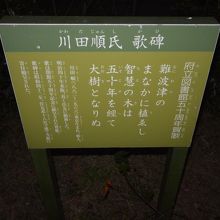 川田順氏は東京帝大法科を卒業して住友総本社では総理事就任を固辞して退社、歌人としても活躍して、一方では不倫に悩んで自殺未遂するなど、複雑な人だたったようで、詩人で経営者でもあった西武の堤清二氏がこの恋愛事件のことを「虹の岬」という小説にしています。碑は中央図書館の入り口の右側にありますが、府立図書館が住友家の寄付によってできたということと関係しているのでしょうか。