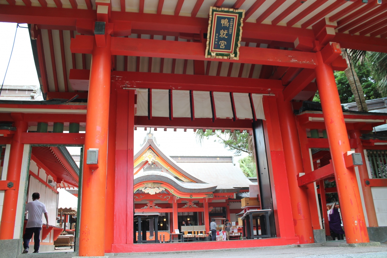 橋を渡るのですが、周囲には鬼の洗濯岩がたくさんあり、感動して写真を撮りまくりました。地元の方や観光客の方がサーフィンをしたり、ヨガをしたりとまさに自由の楽園といった雰囲気。神社も南国で陽気な明るい印象を受けました。