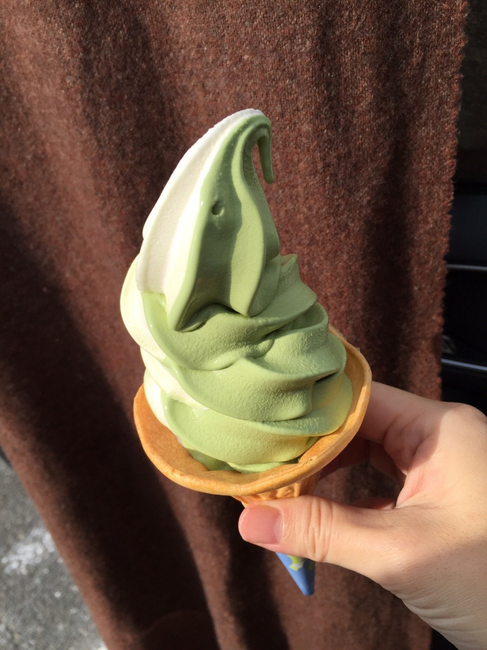 抹茶ソフト、ミックス、バニラとあり、各400円。