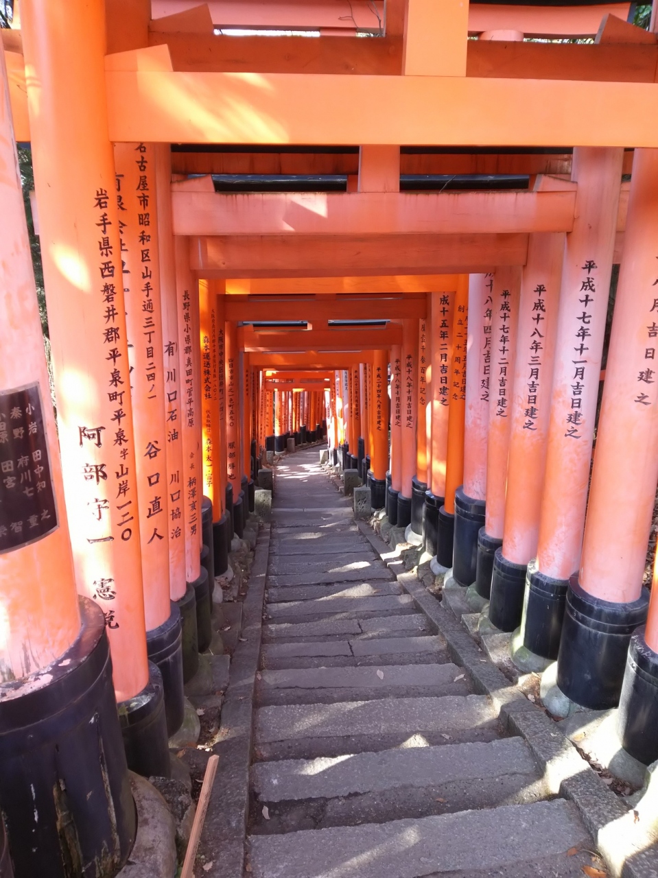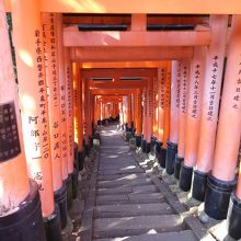結構な人でしたが、四つ辻という千本鳥井を登って行った見張らしのいいところまで出ました。