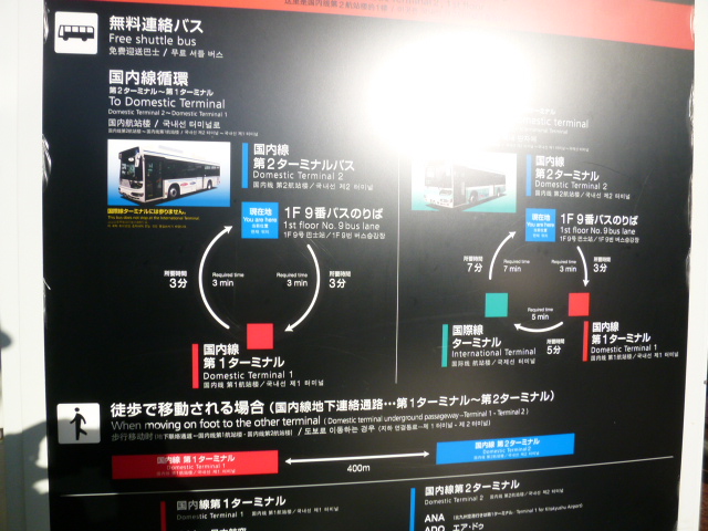 羽田空港のターミナルは、第一ターミナル、第二ターミナル、そして国際線ターミナルの三つがありますが、各々を第二から第一、国際線へと循環している無料バスがありますが、今回第一と第二だけを循環している無料バスもあることを知りました。第一から第二へ移動する方には国際線を経由しないので便利ですね。