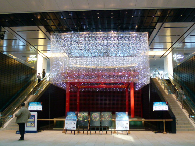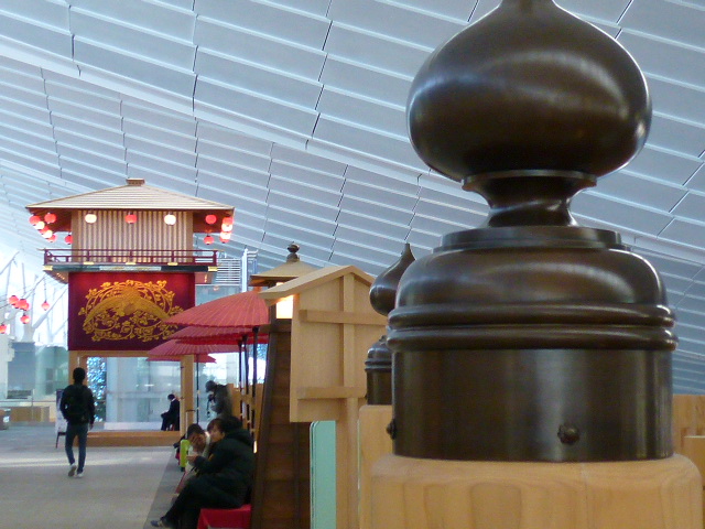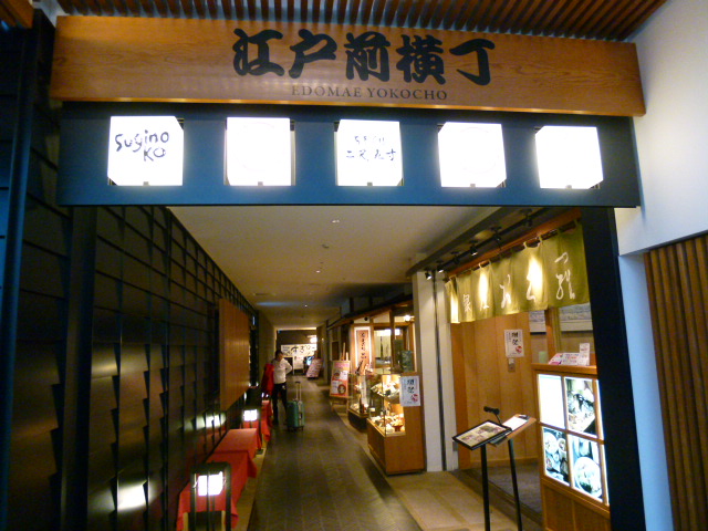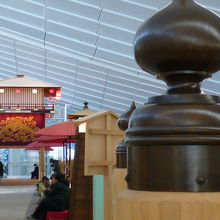 ここ江戸小路は、羽田空港国際線ターミナルの出発ロビーの上、エスカレーターで登ったところにあります。江戸、という名称を使っているだけあって、街の雰囲気はまるで江戸時代、その中に土産屋さんや食事処もそれにぴったりですね。また左手には大きな橋がありますが、これは「はねだ日本橋」合わせて楽しんでくださいね。
