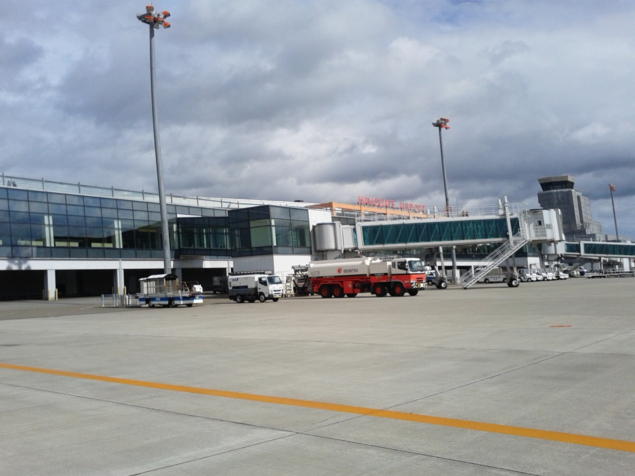 JR函館駅からバスで20分程度、湯の川温泉からでも5~6分である。それほど市内から近い位置にある。空港からは、千歳や丘珠、東京便など発着している。2階にはお土産店が入り、3階は展望台もある。コンパクトながら便利な空港である。千歳へは離陸したらドリンクサービスする間もなく到着となる。びっくりするほど短い。