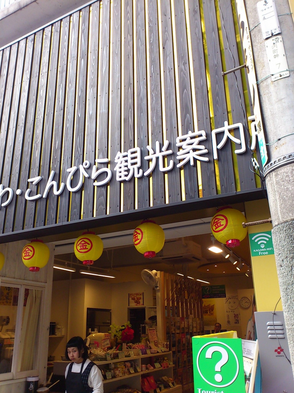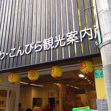 金比羅山の石段の前の参道にある観光案内所です。入口にショップ、奥に観光案内所があるので、観光案内所としては使い勝手が悪いです。気軽に入って、観光情報を入手出来るようではないといけないと思います。ですが、案内の方はとても親切で助かりました。
