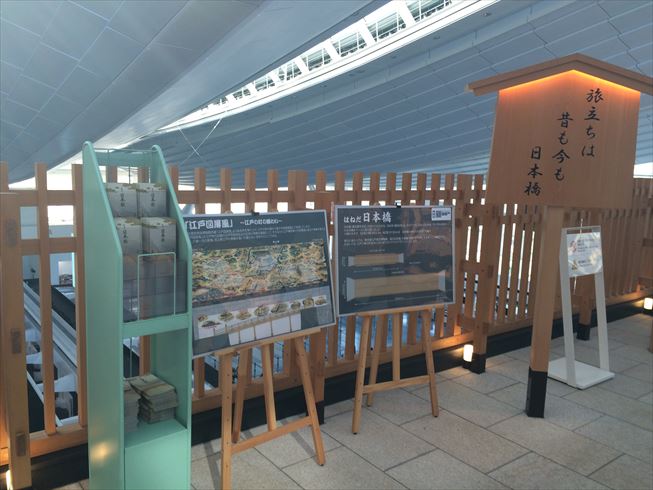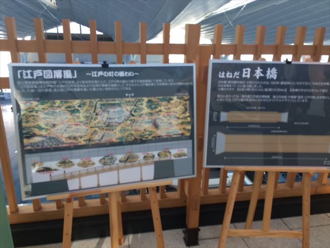江戸小路(羽田空港国際線ターミナル)には、日本橋が有って、本物に対して、縮小したバージョンでは有りますが、雰囲気抜群の施設です。お城の絵もしっかりとしていて、ぜひ、一度、羽田の日本橋に行ってみてください