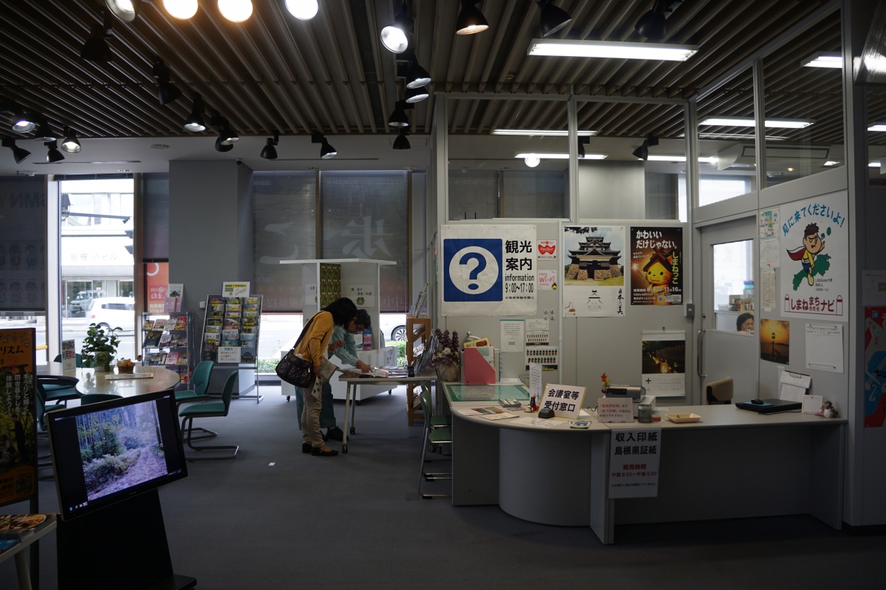 松江市の観光案内所だと松江駅前の案内所が一番知られていると思いますが、松江城に近いエリアだとこのタウンプラザしまねになるでしょう。そして、ここは松江だけじゃなくて、島根全県下の情報が揃っているので、そうした利用方法がいいのかなと思います。