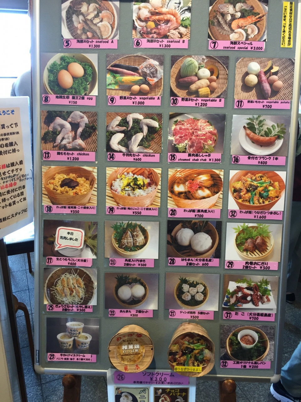 鉄輪温泉のいでゆ坂にあります。湯けむりがあがっていて、温泉情緒たっぷりのスポットです。食材を選び蒸すやり方を教わって、食べることになります。酔っていると危ないからか、過去にトラブルがあったからなのかは、分かりませんが、アルコール類はなぜか禁止となっていました。