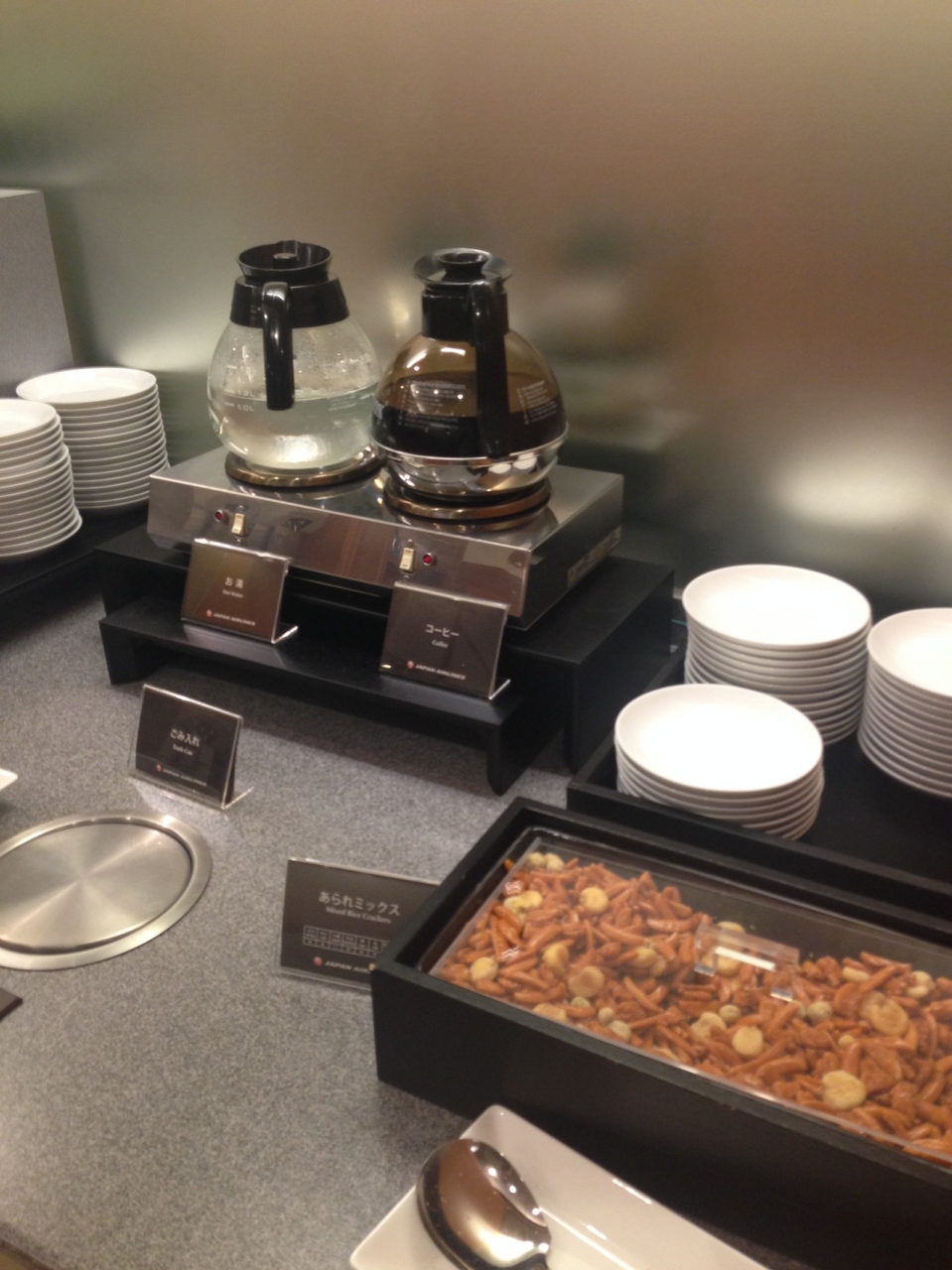 とにかく小さなラウンジです。羽田のJALラウンジよりもだいぶ小さく、待合室のようなイメージです。一応ビールサーバーは2つ、焼酎は二種類置いてありました。年末年始の混み合う時期だったので、ほぼ満席状態でかなり窮屈で残念でした。