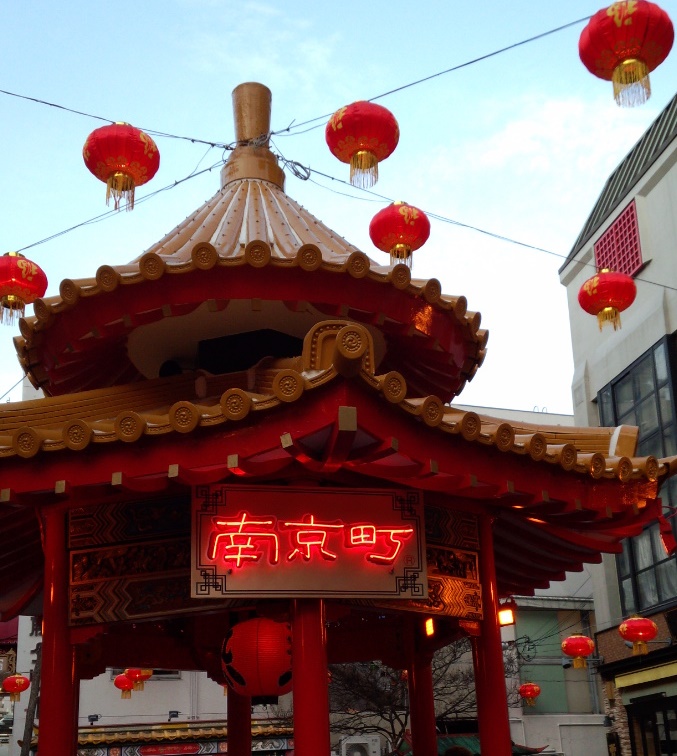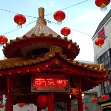 神戸南京町のちょうど真ん中辺りにある広場で、ここでよく観光客の方が写真撮影をしています。