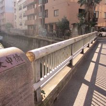 恵比寿駅から5分ほど行った渋谷川に架かっている、長さ10mほどの短い橋です。道幅もそれほど広いわけではありませんが、記録によると、江戸時代は重要な交通路だったそうです。橋のたもとには演劇等が上映されるエコー劇場があります。
