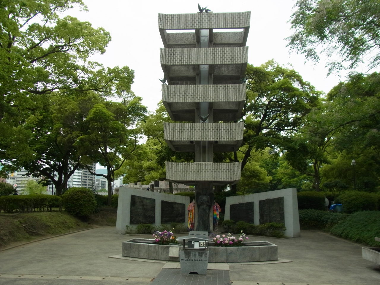 第二次世界大戦中、労働力の不足を補うため、勤労奉仕に動員され戦禍にたおれた学徒と、原爆の犠牲者を含めた約1万人の学徒の霊を慰めるため、名簿作成運動を始めた遺族による募金によって建てられたものです。元安橋から原爆ドームへ向かう途中にあります。