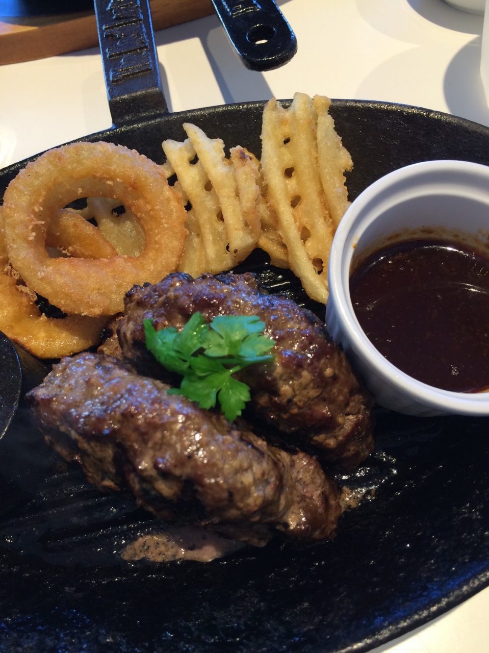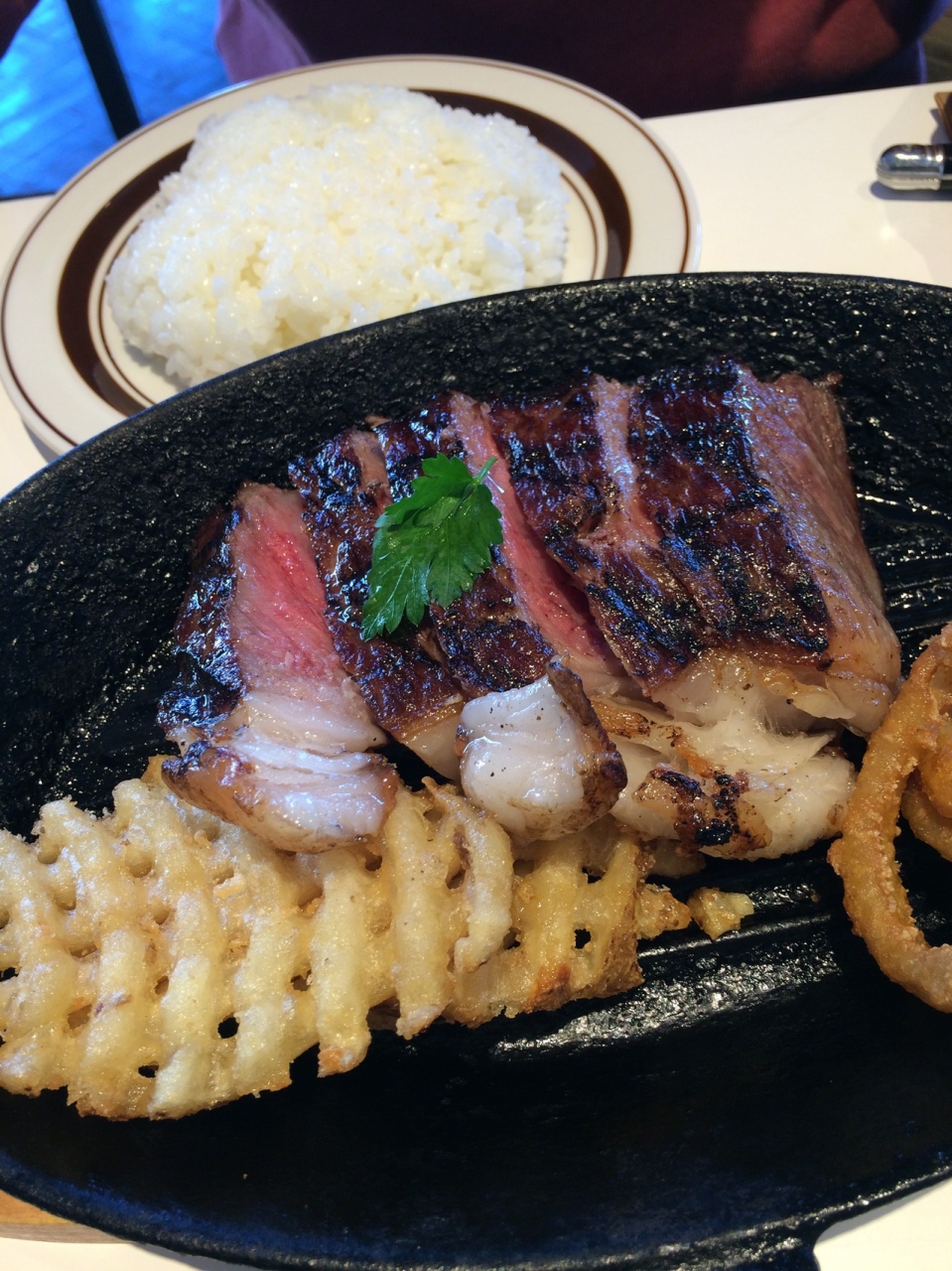 美味しいステーキとハンバーグが食べたいと思っていたので入ってみました。かなりの混雑で40分くらい待ちました。店内に通されオーダーしてからも待たされたのですが熱々のステーキとハンバーグが運ばれてきて嬉しかったです