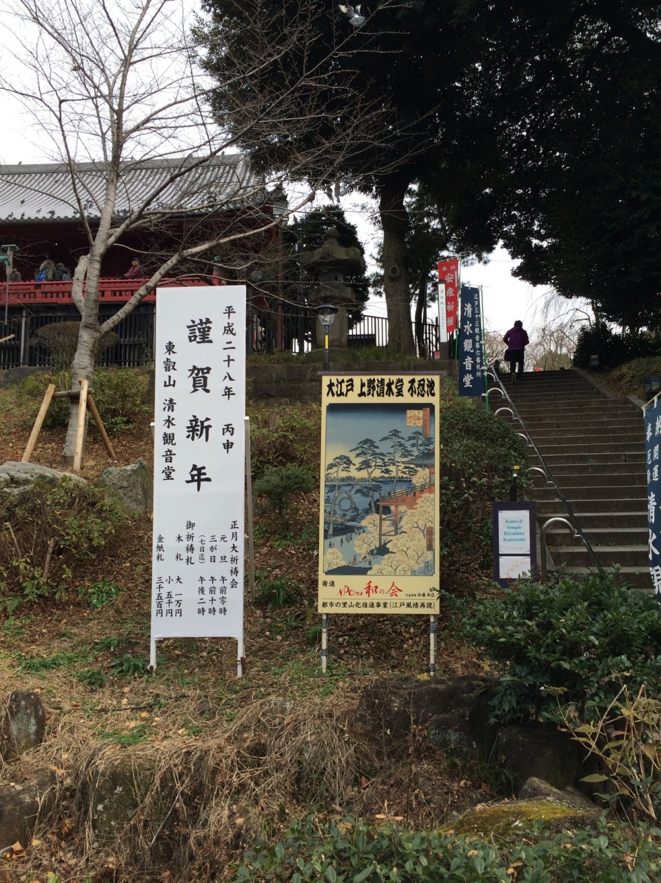 江戸時代の初めに寛永寺が建てられたときに京都の清水寺を模して高台につくられたものです。本尊も清水寺にあった観音像をお祀りしているそうです。特に不忍池のある西側の見晴らしがよく月の松ごしに弁天堂が眼下に見下ろせます。逆に西側の傾斜はきつくて登りにくいので、東側の西郷さんの方から登られることをお勧めします。