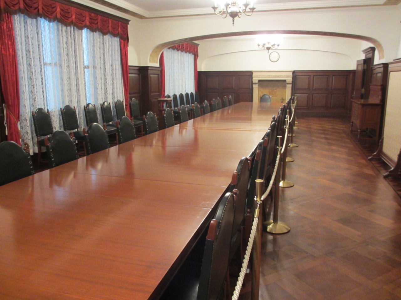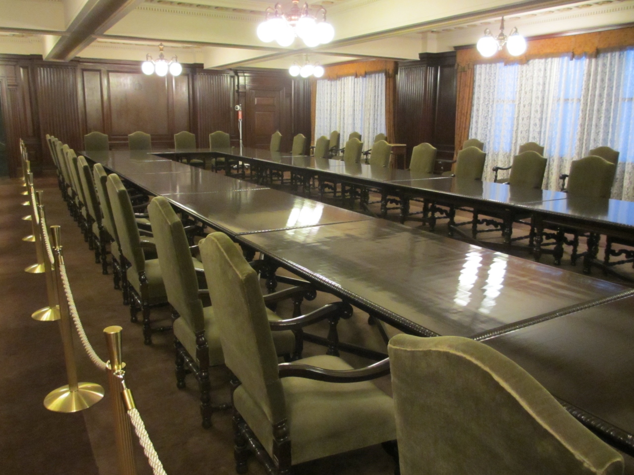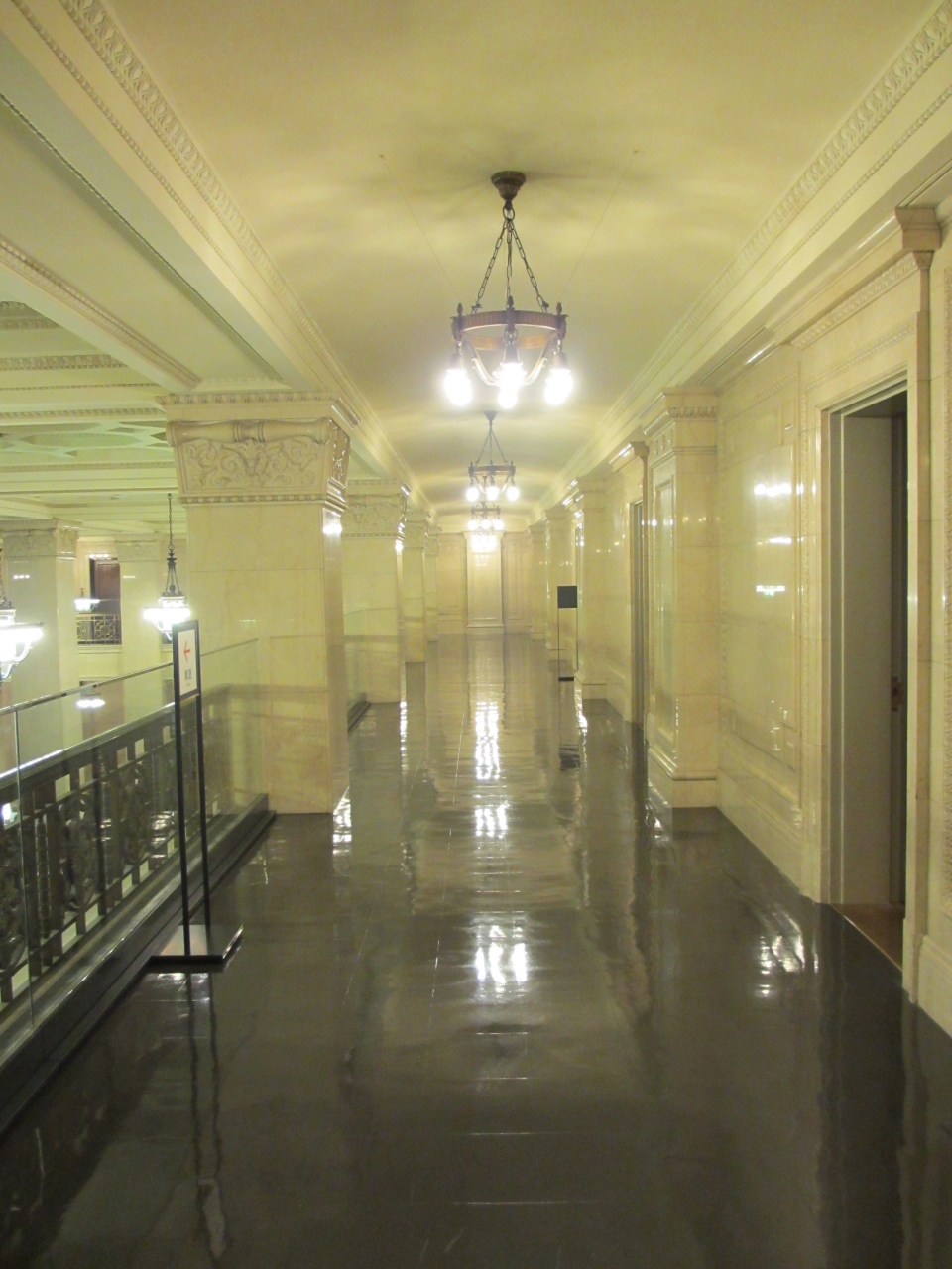 東京メトロ二重橋前駅からすぐです。昭和9年に竣工した重要文化財の明治生命館は曜日・時間限定で一部公開されてます。馬場先濠に面した重厚な建物は目をひきます。天井が高いラウンジ、会議室、食堂、応接室などを見学できます。家具は特別に作られたもので、各部屋に調和してます。大理石の壁・柱や漆喰や石膏のレリーフなどの芸術品や、応接室の絨毯はそれぞれデザインが異なり洋式のもの、和風のものなど見ごたえあります。ゆっくり見ていると警備員が説明をしてくれました。