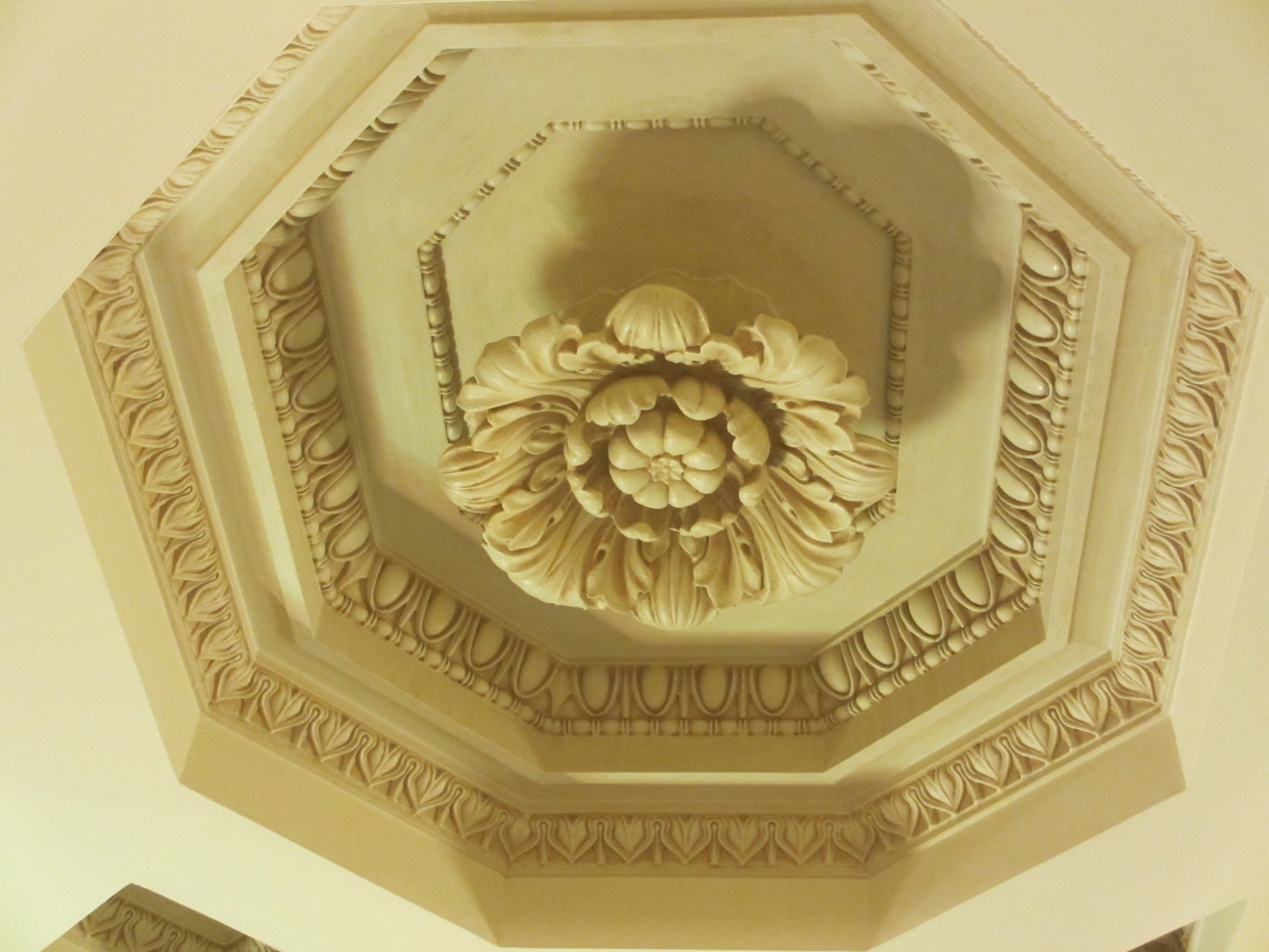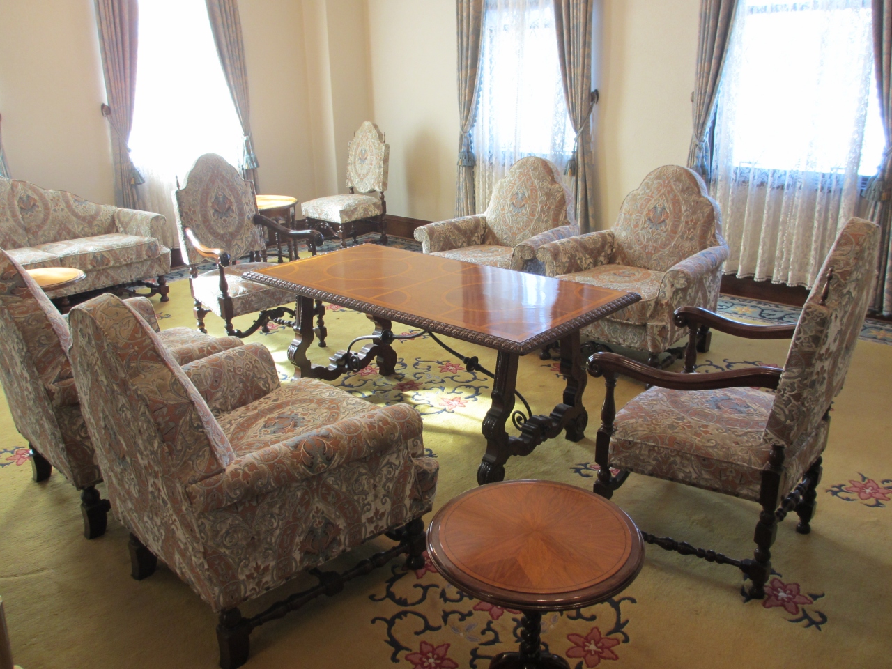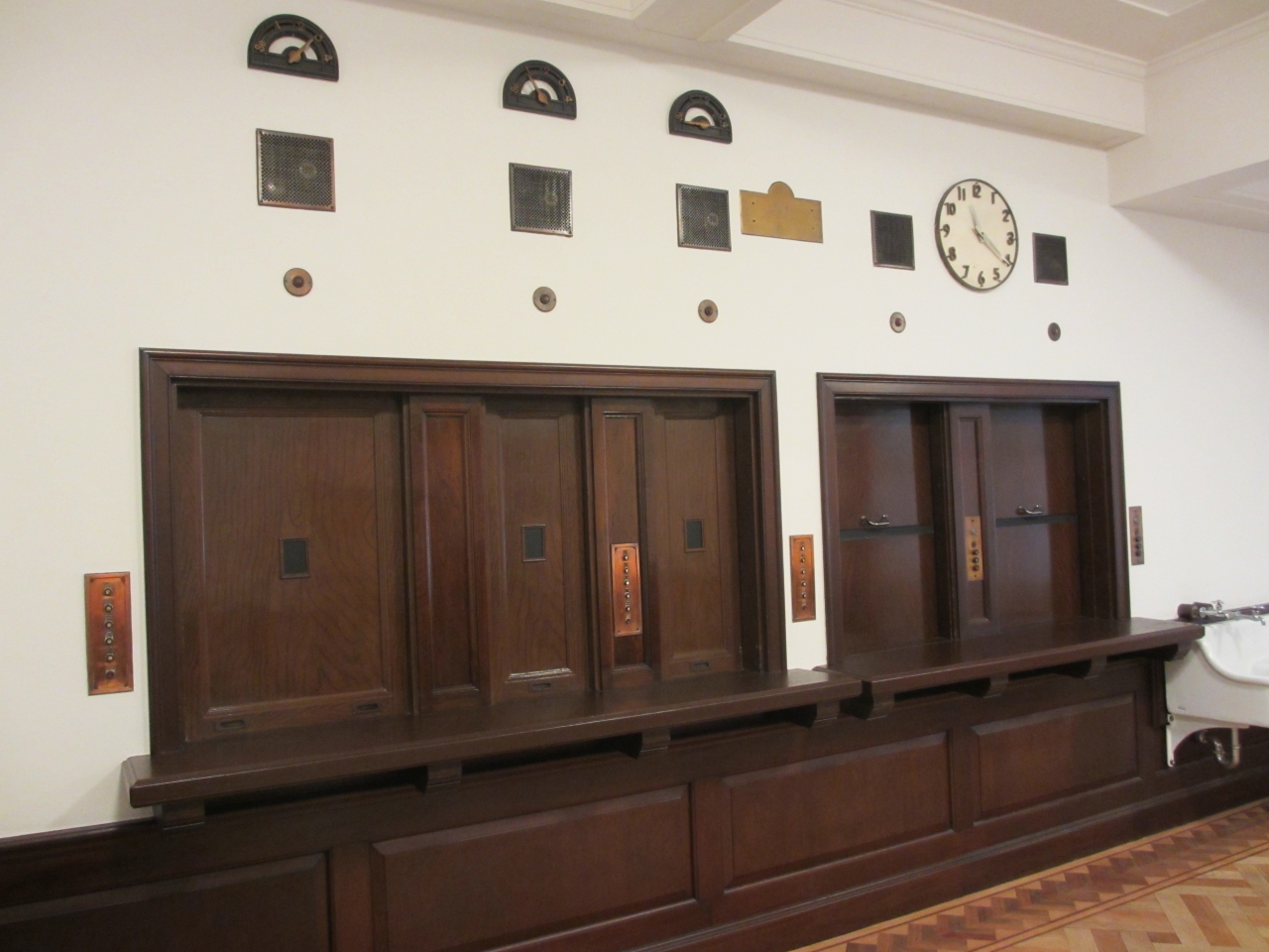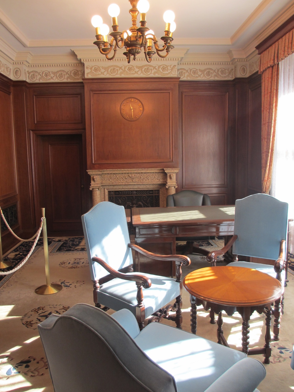 東京メトロ二重橋前駅からすぐです。昭和9年に竣工した重要文化財の明治生命館は曜日・時間限定で一部公開されてます。馬場先濠に面した重厚な建物は目をひきます。天井が高いラウンジ、会議室、食堂、応接室などを見学できます。家具は特別に作られたもので、各部屋に調和してます。大理石の壁・柱や漆喰や石膏のレリーフなどの芸術品や、応接室の絨毯はそれぞれデザインが異なり洋式のもの、和風のものなど見ごたえあります。ゆっくり見ていると警備員が説明をしてくれました。