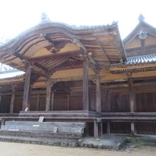 細長い形状の「楽屋」と呼ばれる建物と