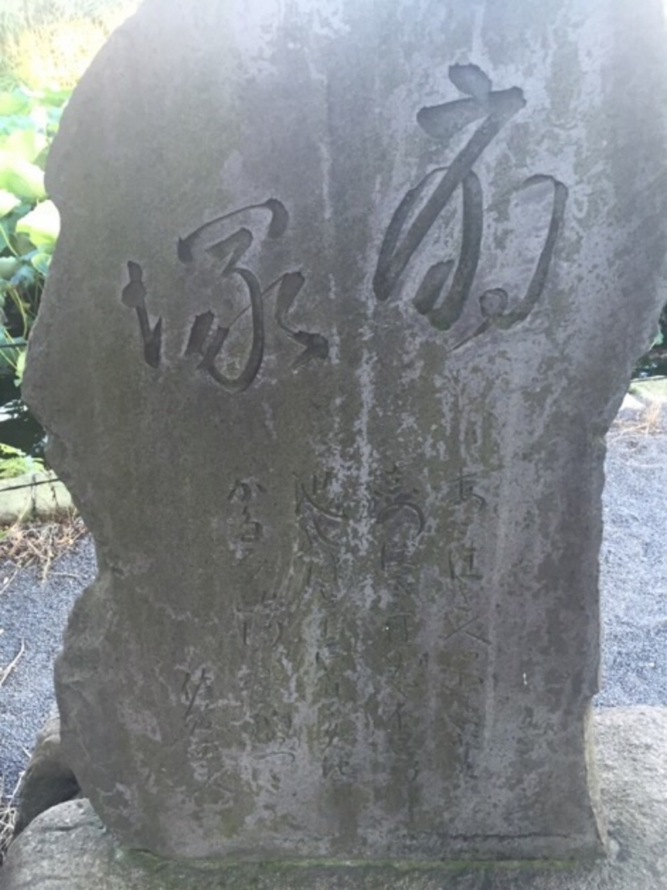 この扇塚は、上野不忍池の弁天堂の少し手前の左側にある作家佐藤春夫氏の詩文で、扇の形をした碑です。