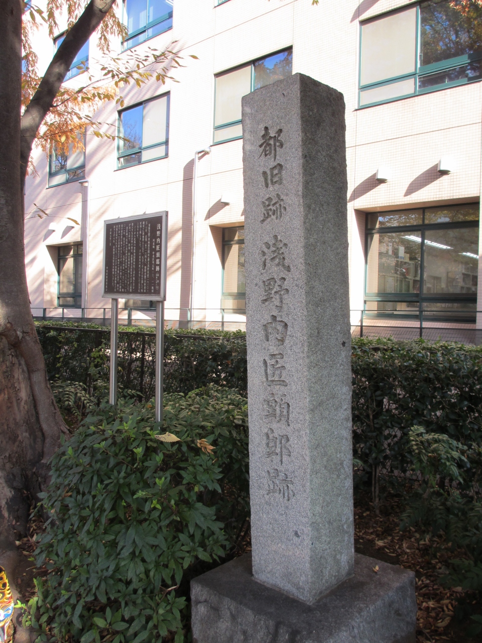 東京メトロ築地駅から徒歩5分です。常陸笠間藩主浅野長直は1645年播磨赤穂に領地替えとなり、内匠頭と称しました。現在の聖路加国際病院と河岸地を含む土地に赤穂藩主浅野家の江戸上屋敷がありました。忠臣蔵で名高い浅野内匠頭長矩は長直の孫にあたります。江戸城中で刃傷に及びこの江戸屋敷と領地などを取り上げられ浅野家は断絶しました。