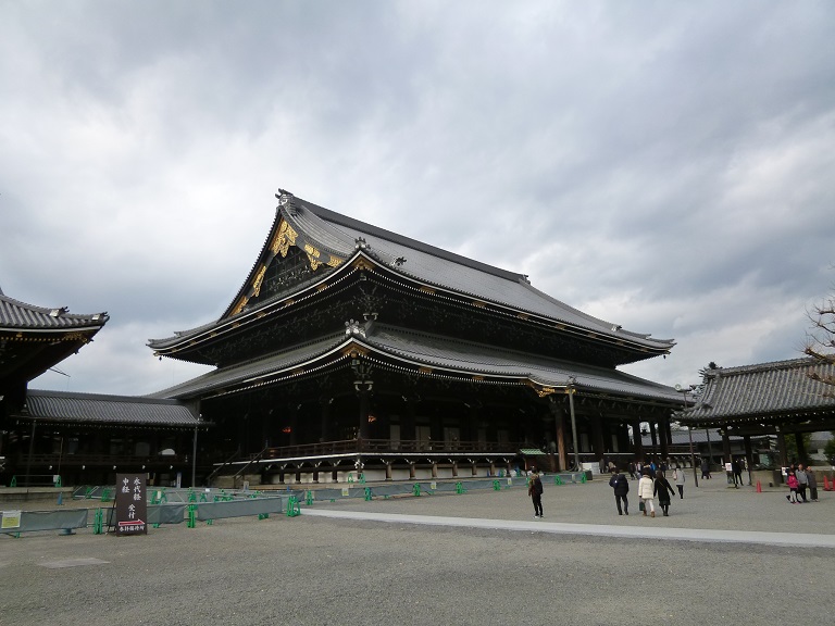京都駅から地下街を通って10分ほど。日本でも有数の大きさを誇る本堂と御影堂が。