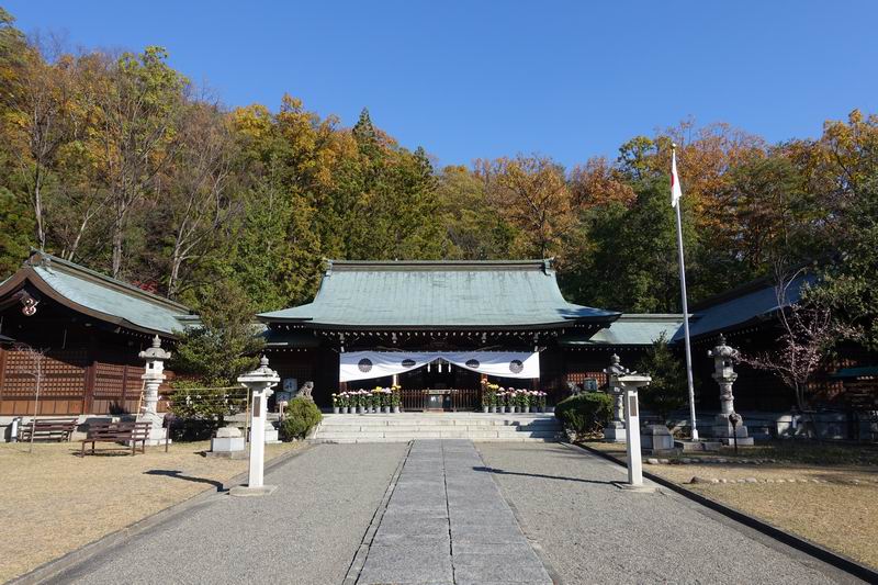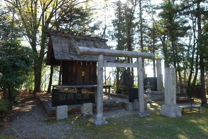 日露戦争や太平洋戦争等で殉死した山梨県出身の英霊を主祭神として祀っています。社殿は石段を上がった小高い所に鎮座。境内にはそのほか、殉職した自衛官を祀る山梨宮、戦没者納骨堂などもありました。