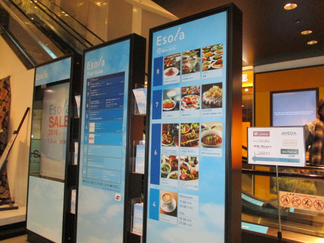 池袋駅でメトロが経営するのがエソラとエチカ、名前の通りエチカは地下街でエソラは地上のビル。どちらも池袋駅から直です。結です。エソラは幅の狭いビルでエスカレーターを囲むように店舗が並んでいます。服飾雑貨が多いですが、上階の6階以上がレストラン街です。香家 Hong Kong Dining、牛たん炭焼 利久、KICHIRIがお勧めです。
