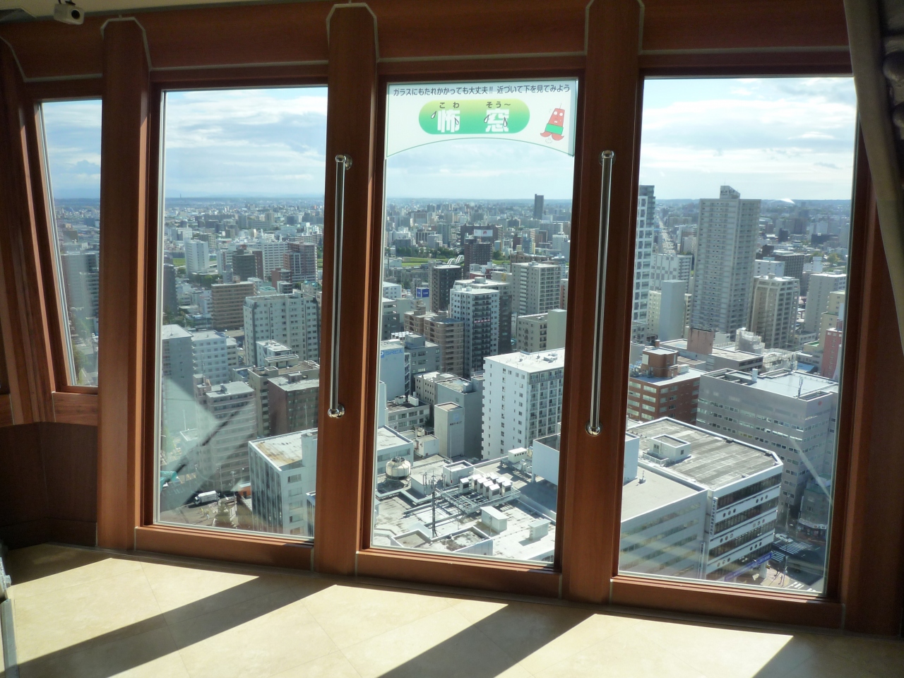 大通り公園の端にあって札幌のシンボル的存在です。展望台に登って西側をみると札幌市街地が広がってその中に大通公園がまっすぐ伸びています。高さもほどよく眺めがいいです。展望台の窓が足元まで大きく広がっている部分があります。近づくとちょっと怖い感じもしますが高さを感じます。