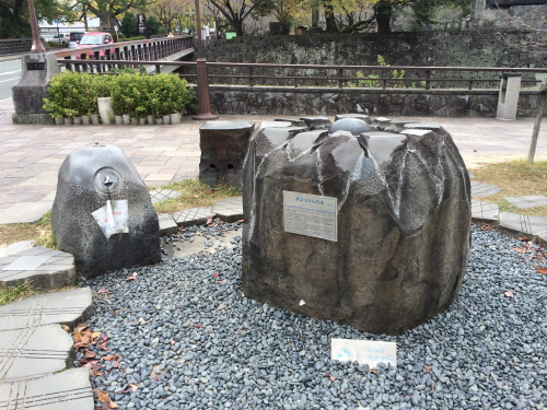 市民会館の前の三叉路にあり、観光バスなどではで車中観光ができると思います。