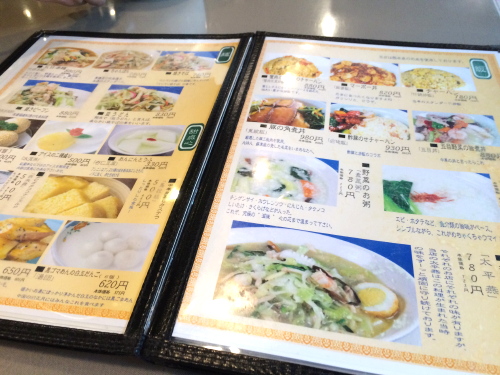 で、2階へ。とっても感じの良いウエイトレスの方に聞いたら、1階は飲茶やラーメンを出しているそうで、同じ経営だとのことです。