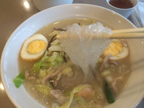 春雨は細く、イカエビ細切りの豚にキャベツキクラゲたけのこが入っていました。