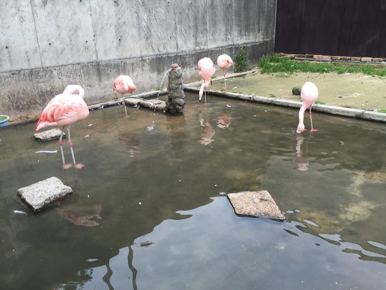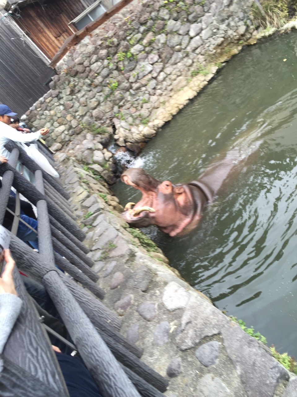 大きな敷地内に色々な動物がいます。一番奥に山地獄と呼ばれる噴気がありますので、必然的に各動物を見ていくことになります。フラミンゴ、カピバラなど珍しい動物がいますが、一番の見ものは、餌を食べるカバで、多くの人が楽しそうにみていました。