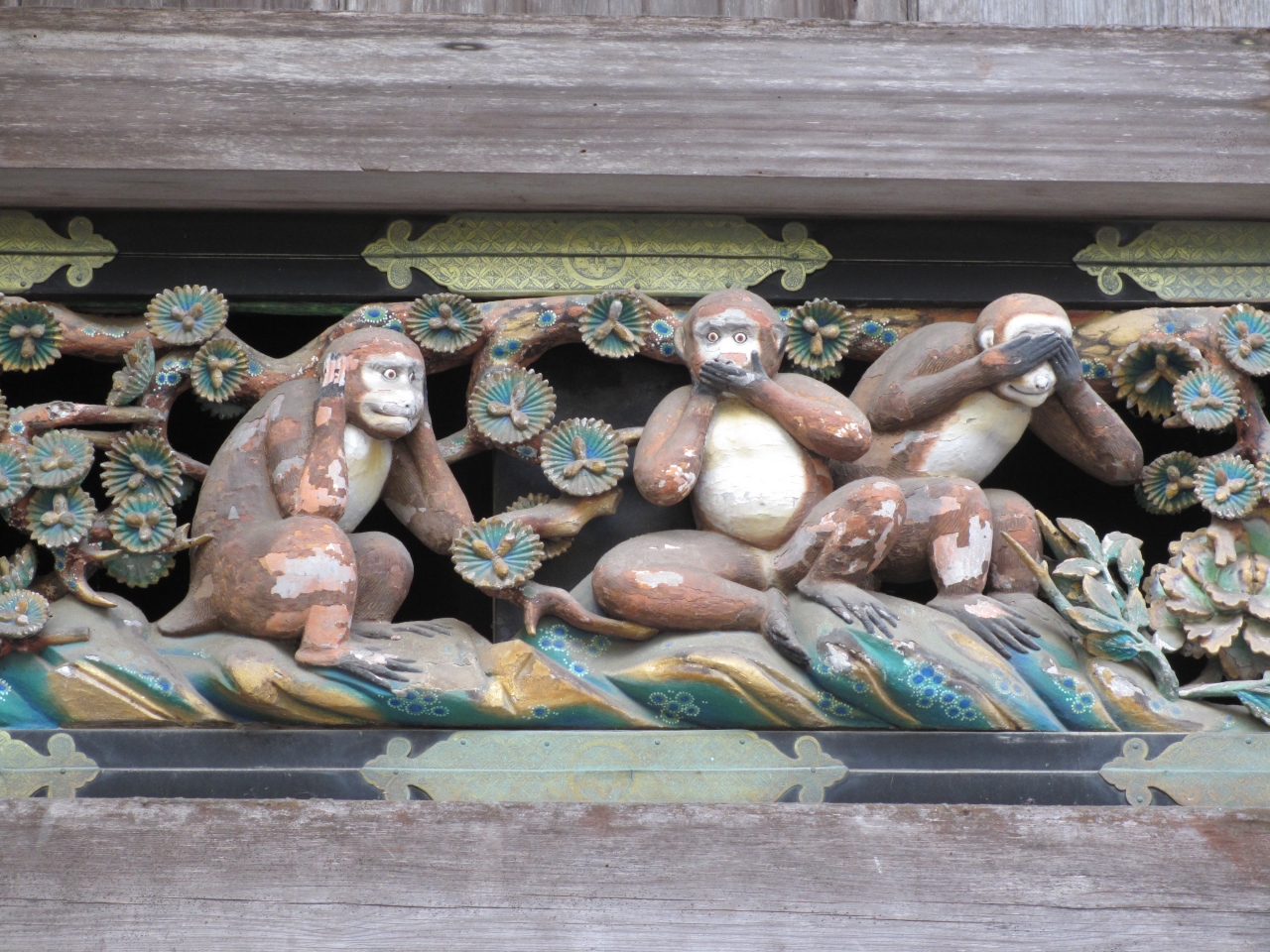 表門を抜けて左手に行った左側の神厩舎に掘られています。8面16匹の猿がそれぞれ人の一生を表現しています。最も有名な三猿は2面にあり幼児期の教えを解いたもので、悪いものを見たり聞いたり言ってはいけないという内容を表しています。ちなみに1面は子育てを表し、3面以降は独り立ち、恋愛、結婚、妊娠などを表現しています。