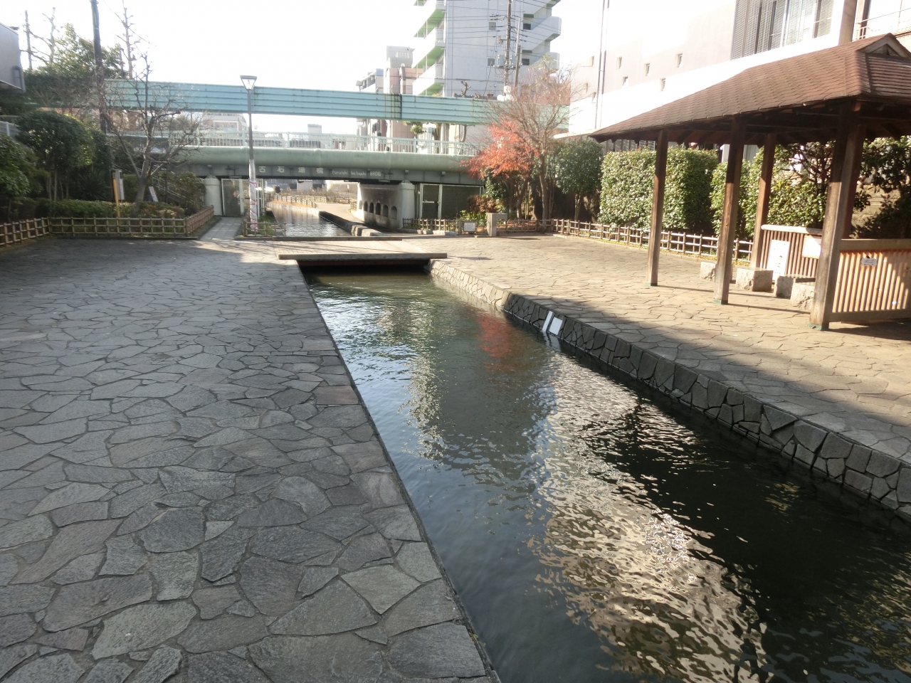 水の流れと共に、牡丹町の名に因む牡丹園、洋風バラ園、アジサイなど季節の花が楽しめる。
