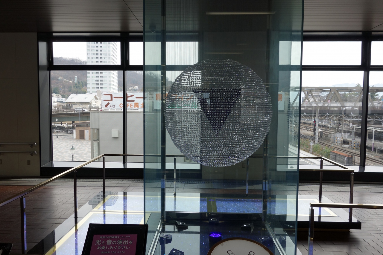 甲府駅内にある広場に置かれたオブジェです。甲府の名産である水晶を大量に使用しています。なんでもあるストラップを置くと、光と音のショーを楽しめるということで、見たくて仕方ない僕はそのストラップとやらはどこにあるのかと思ったのですが。その辺の説明は何もなし。なんかなあ……。