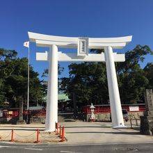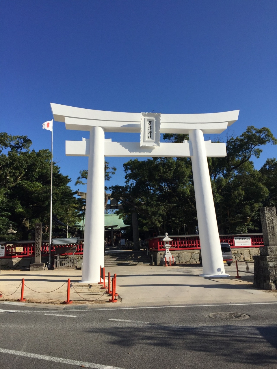 唐津神社を目指すと まず遠目からもハッキリ分かる 真っ白な鳥居!