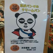 このお店では京成電鉄のゆるキャラ?!京成パンダのクリームパンを食べることができます。