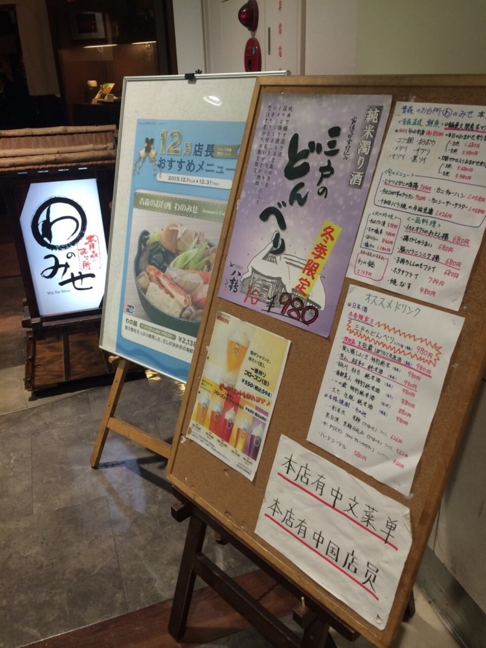 ウイング新橋の少し奥まった場所にあるお店です。青森の郷土料理をテーマにした居酒屋で、他の居酒屋では取り扱っていないメニューがあり、とても面白いです。月ごとで店長のおすすめもあり、12月は鍋でした。ランチもやっているようです。