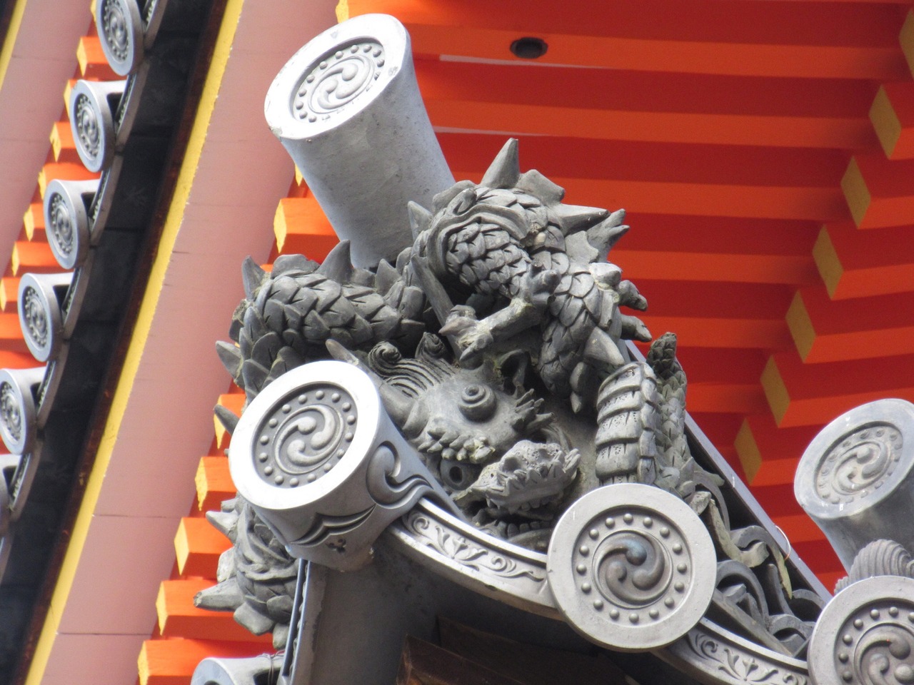 火災除けの為でしょうが、南東角の鬼瓦だけ