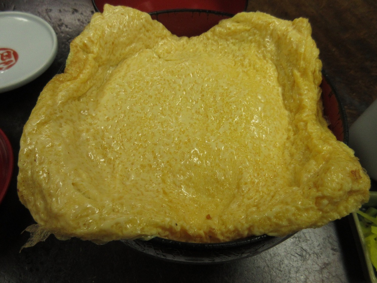 丼からはみ出る大きなだし巻き玉子が
