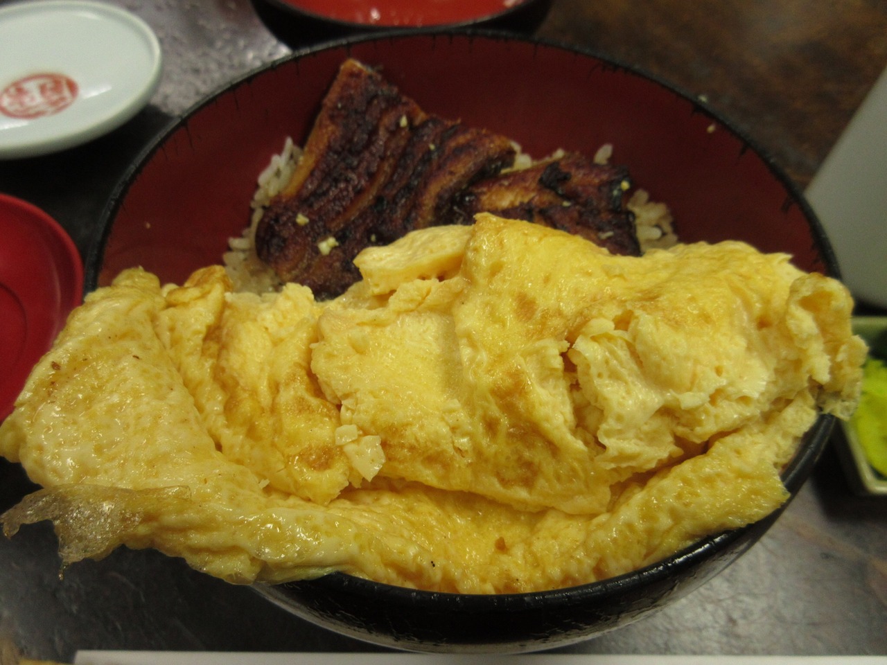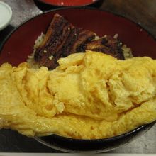 鰻丼の上にだし巻玉子がのっているのですが