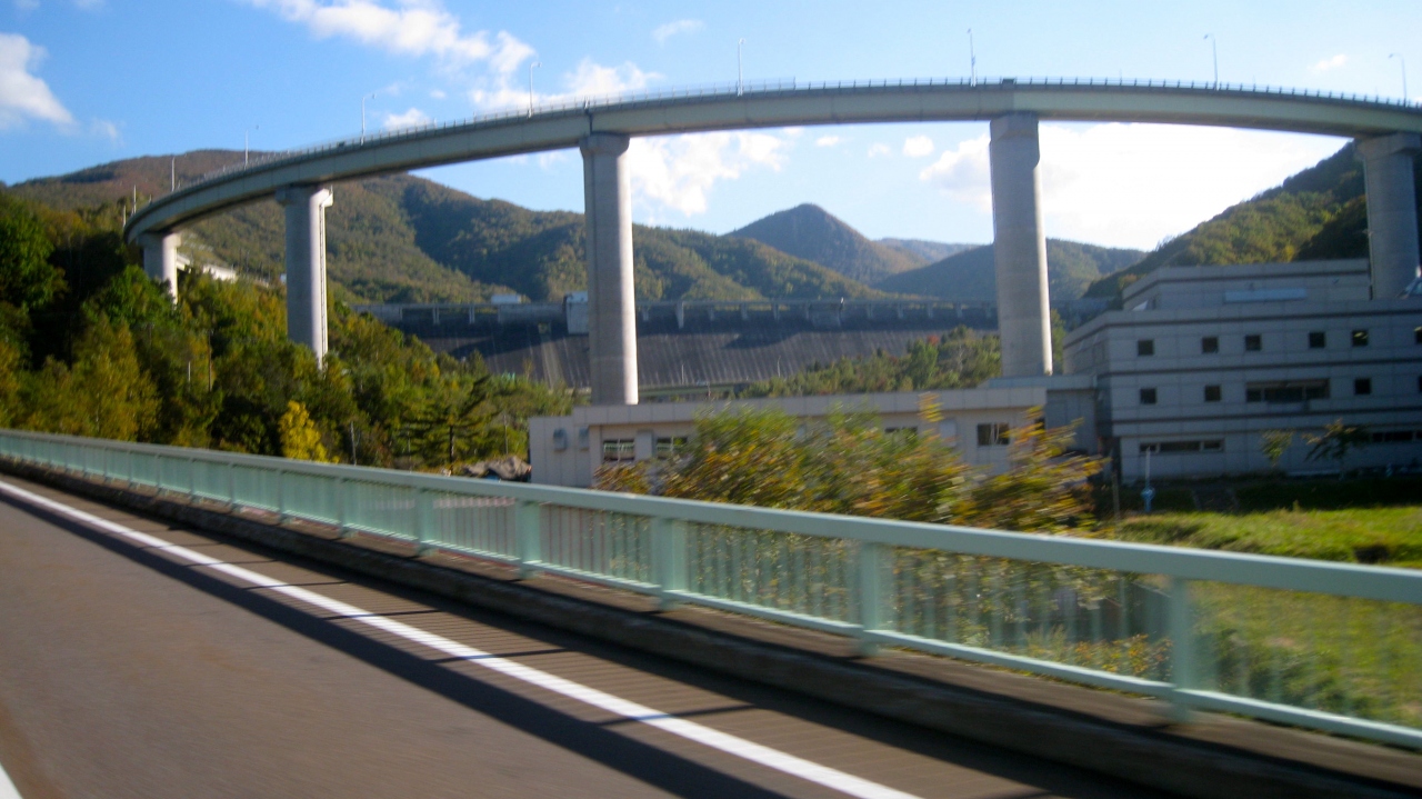 小樽の奥座敷、朝里川温泉の奥にあります。広めの谷を遮るように作られているためダム堤体は横に長い印象を見る人に与えます。ダムのすぐ下流には道道のループ橋があるのでドライブしながらダムに近づくと右に左にとダムが移動して、且つ目線の高さも変化するので立体的にダムを鑑賞できて面白いです。