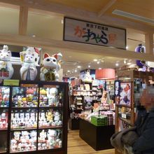 花のお江戸のお祭りのような雰囲気の店で、江戸東京の雑貨を多数扱っています。和風の小物や猫の置物やらがお店一杯に陳列されています。一見雑然としているようで、コンセプトはしっかりしているのでしょう、大人が十分に楽しめるお店です。
