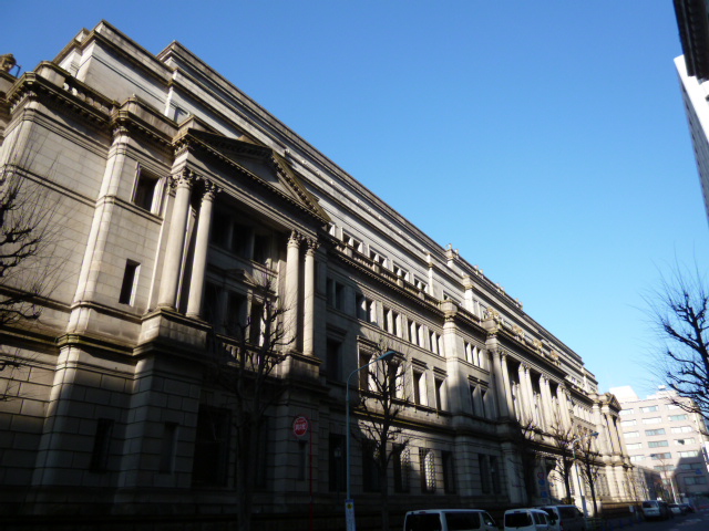 日本の中央銀行は重厚な石造りの外壁。