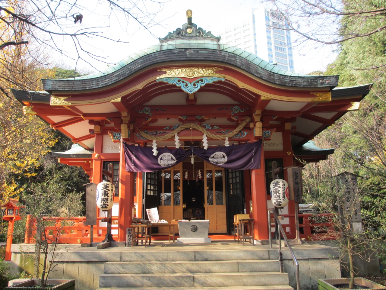 都営三田線芝公園駅から徒歩3分です。増上寺境内にあり徳川家康を祀る廟を安国殿と称されてました。明治時代の神仏分離のため増上寺から分れて東照宮を称し、徳川家康の等身大の寿像が御神像で本殿に安置されてました。1945年の戦災により御神像と天然記念物の公孫樹を除いて焼失しました。寿像が1963年東京都重要文化財に指定され、1969年社殿が完成しました。神木の大イチョウは1641年安国殿の再建に際し、徳川家光が植えたと伝えられてます。1930年に国の天然記念物に指定された後、1956年に東京都の文化財保護条例に基づき天然記念物に指定されました。
