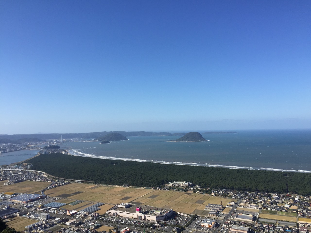 唐津城とは反対側になり 唐津城から見えた台形の山側から 今度は唐津城を見る。