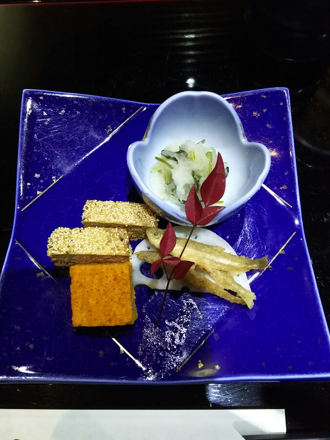蕎麦ディナーは、好きな料理を二品注文し、前菜盛り・稲荷ずし・