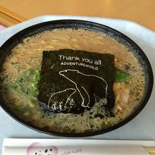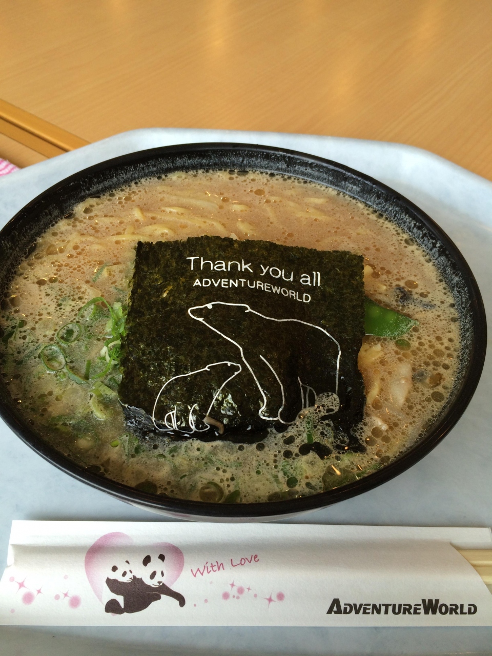 アドベンチャーワールドのエンジョイドーム2階にあります。窓際に座るとちょうど遊園地が見渡せます。セルフ方式でフードコートの様です。1日に何回かショータイムがあり、パンダのマスコットとダンスや写真撮影ができます