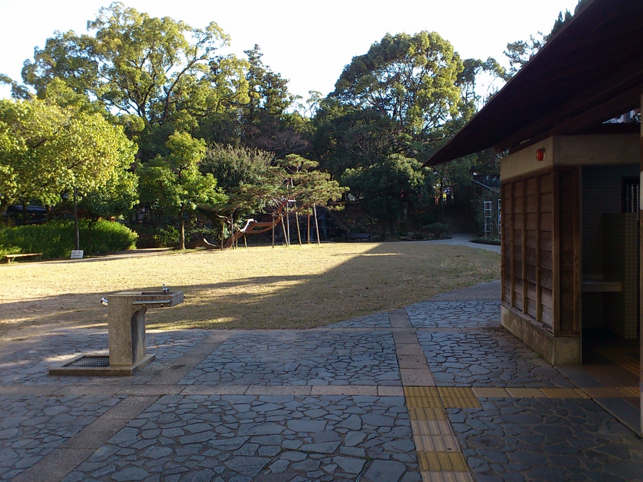 高知城の近くにあるホテル三翠園と土佐神社の間にある公園です。この辺りは鷹匠が集まって住んだ町なので鷹匠町と呼ばれるそうです。ここに幕末に藩主山内容堂が下屋敷を建てたのですが、戦後にホテル三翠園となり、一部がこの鷹匠公園になったそうです。ただの草原の公園です。