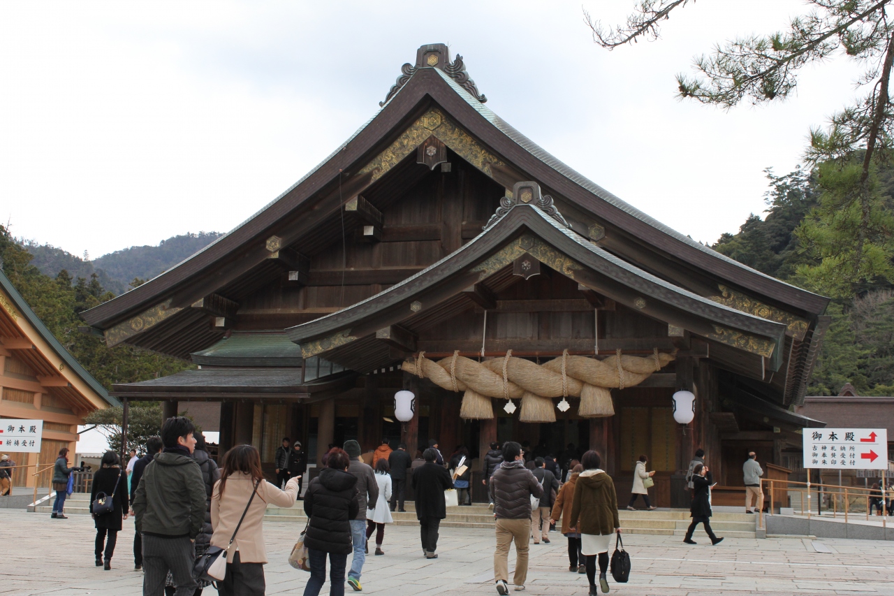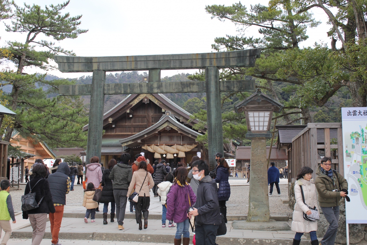 2016年初、お参りに出雲大社に行って来ました。正月気分が抜けた頃なので思ったほどは混んでいませんでした。しかし近隣の県からの観光バスは多かったです。何度も来たことがありますがいつ来てもパワーをもらった気分になります